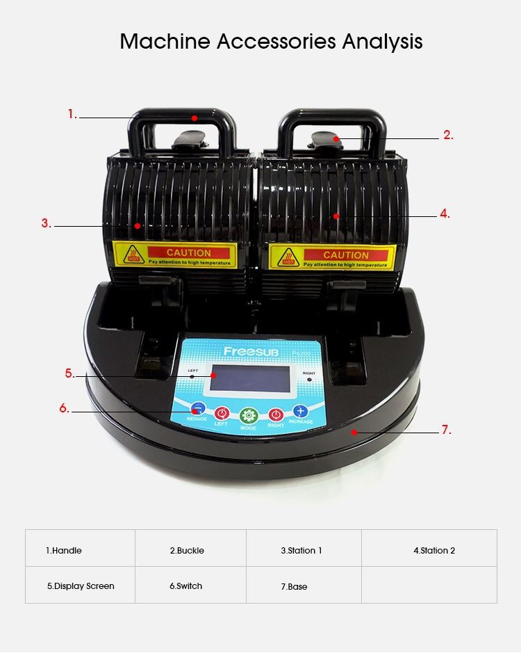 Hot Tags: Mug transfers, China, suppliers, manufacturers, factory, customized, wholesale, cheap, low price, in stock, for sale, made in China, Freesub Double Mug Press, Mug Transfer Machine, 8 in 1 Split Machine, Heat Press Machine 8 in 1, Heat Press Combo, Freesub Iron Small Heat Press